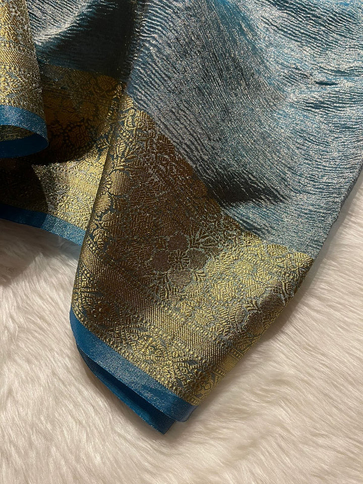 Banarasi Pure Tissue Silk Saree With Hand Crush Pattern and Tassels