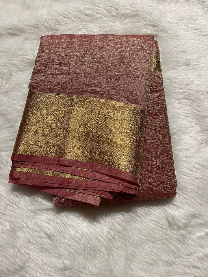 Banarasi Pure Tissue Silk Saree With Hand Crush Pattern and Tassels