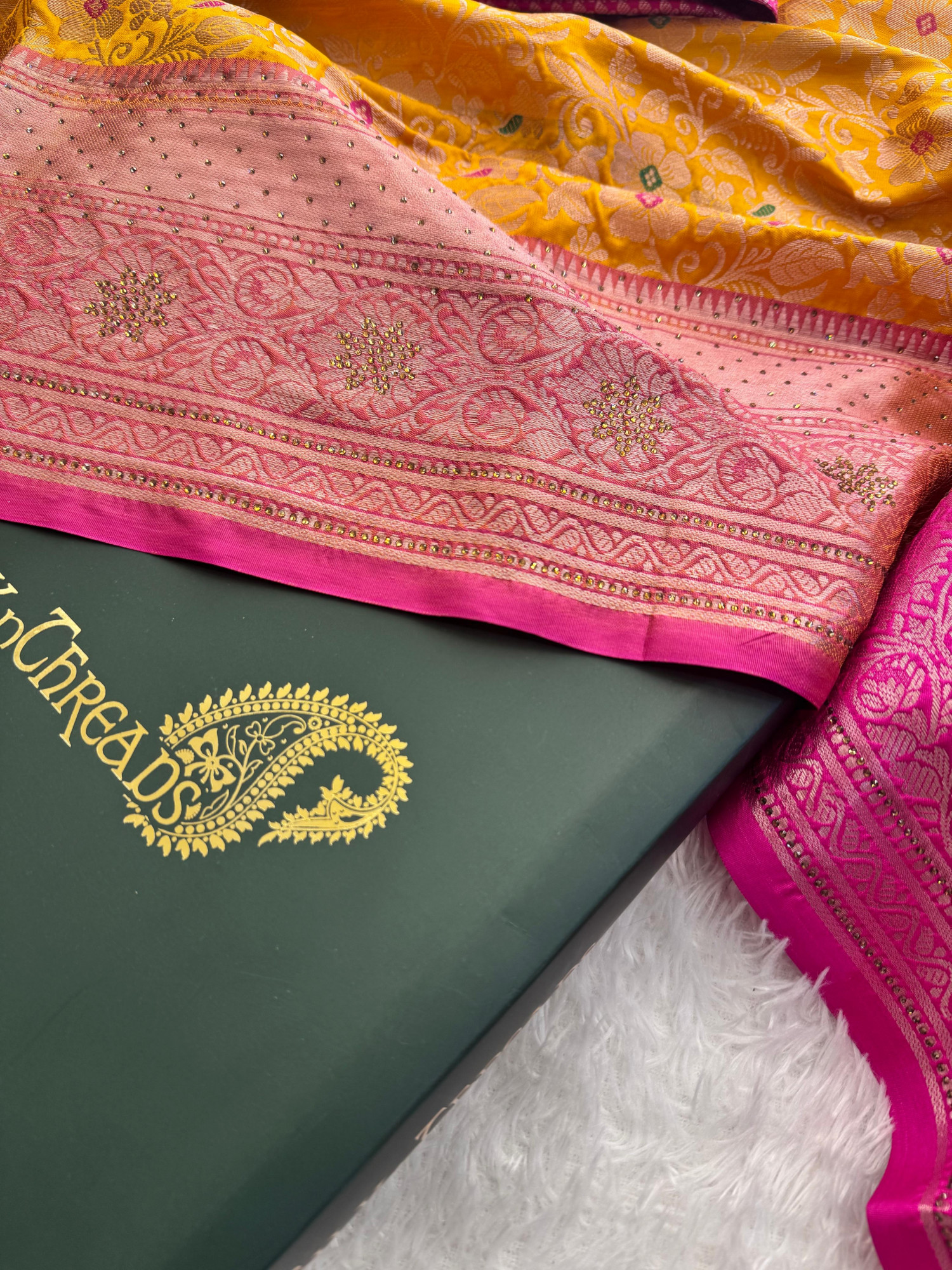 Banarasi Silk Zari Jaal Meenakari Weaving Saree With Swarovski Crystal Work