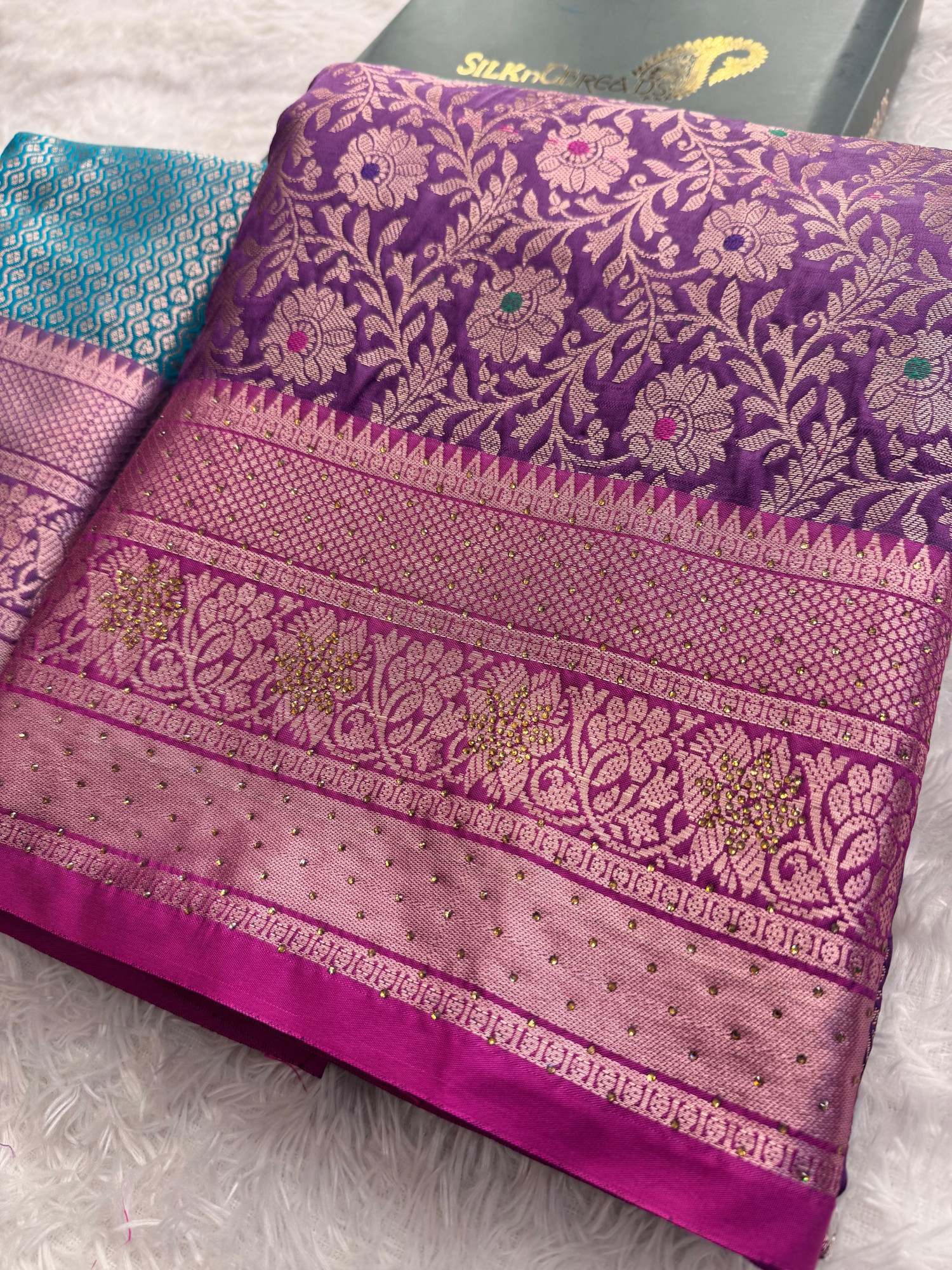Premium Banarasi Tissue Silk Saree with Swarovski Crystal Work