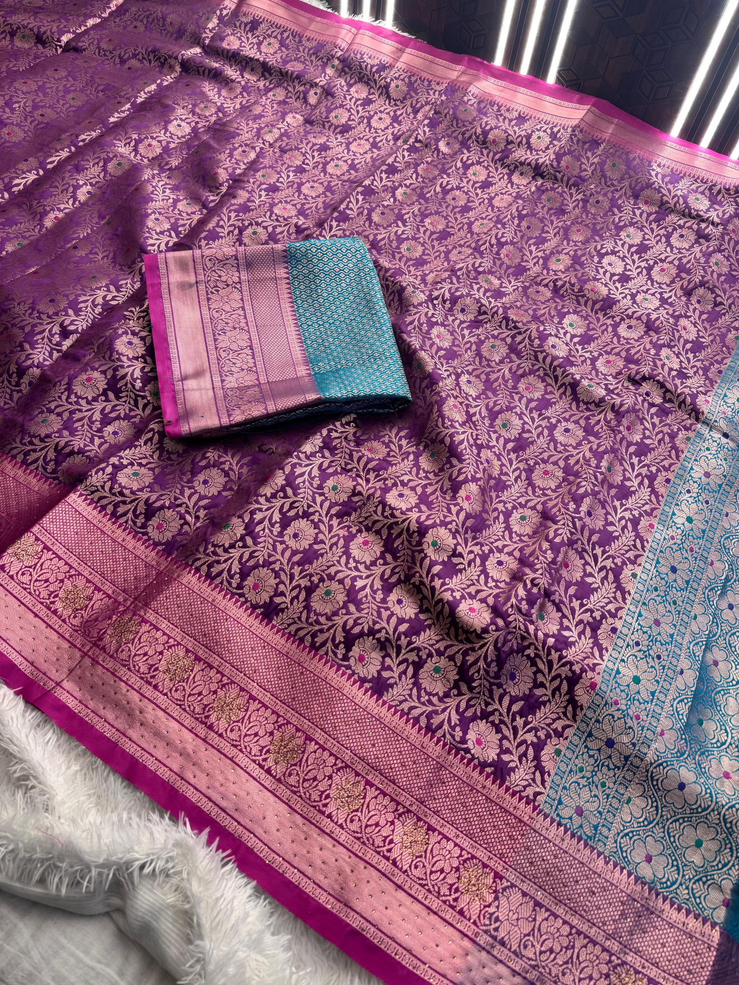 Premium Banarasi Tissue Silk Saree with Hand Work Blouse and Designer Lace