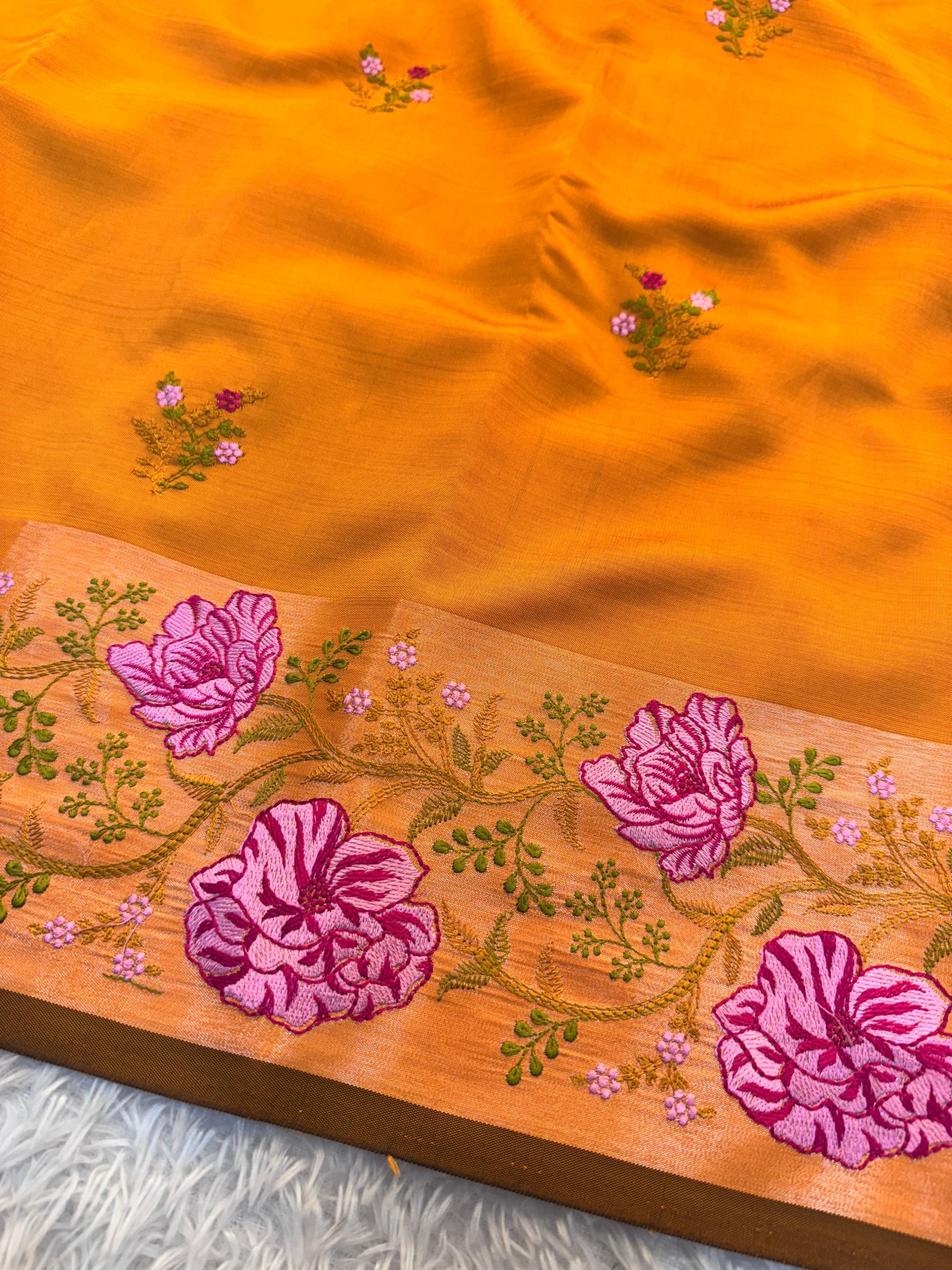 Banarasi Silk Resham Embroidery Work Saree With Tassels