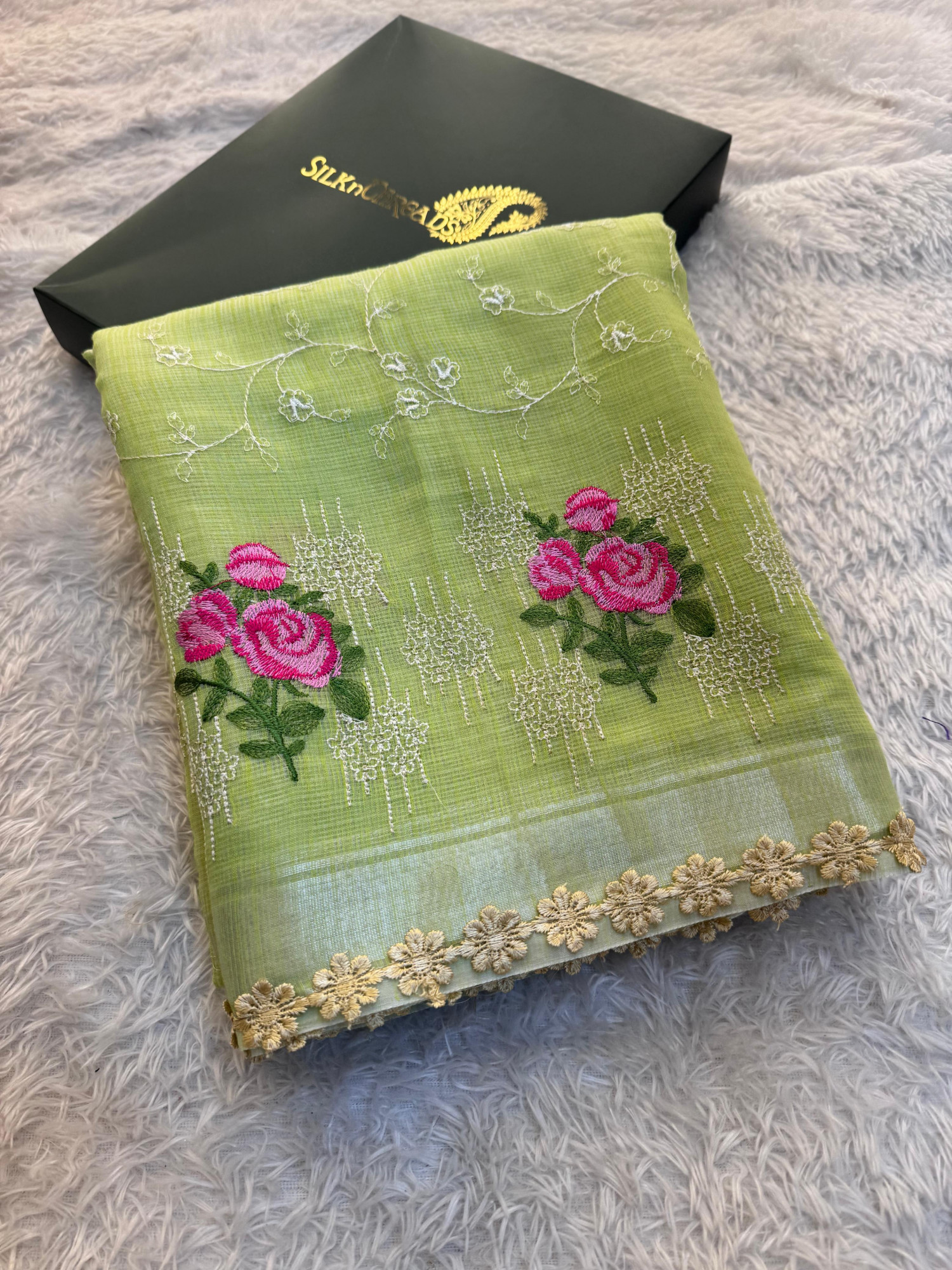 Kota Doria Checks Resham Embroidery Saree with Resham Lace