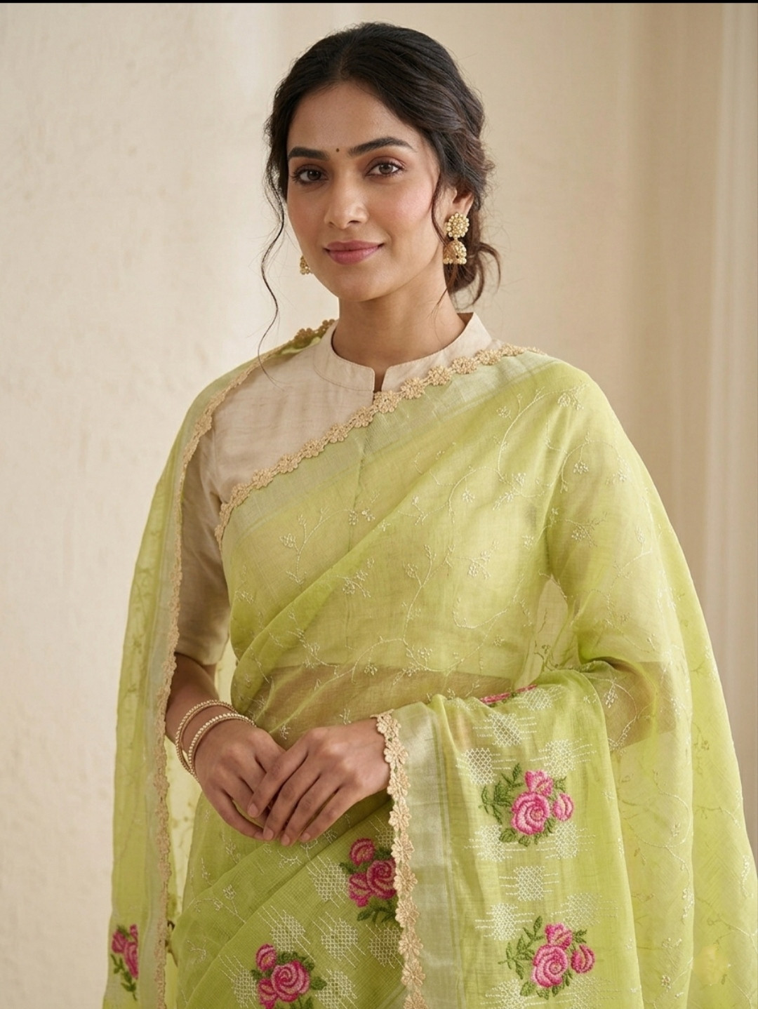 Woven with tradition and elegance, this Kota Checks Embroidery Saree is a true reflection of India's rich textile heritage. Crafted from Kota Silk, it features intricate Resham work, a lustrous finish, and a luxurious drape that enhances your grace on every occasion. Perfect for weddings, festive celebrations, or cultural gatherings, this saree is a must-have for those who value timeless beauty and craftsmanship.