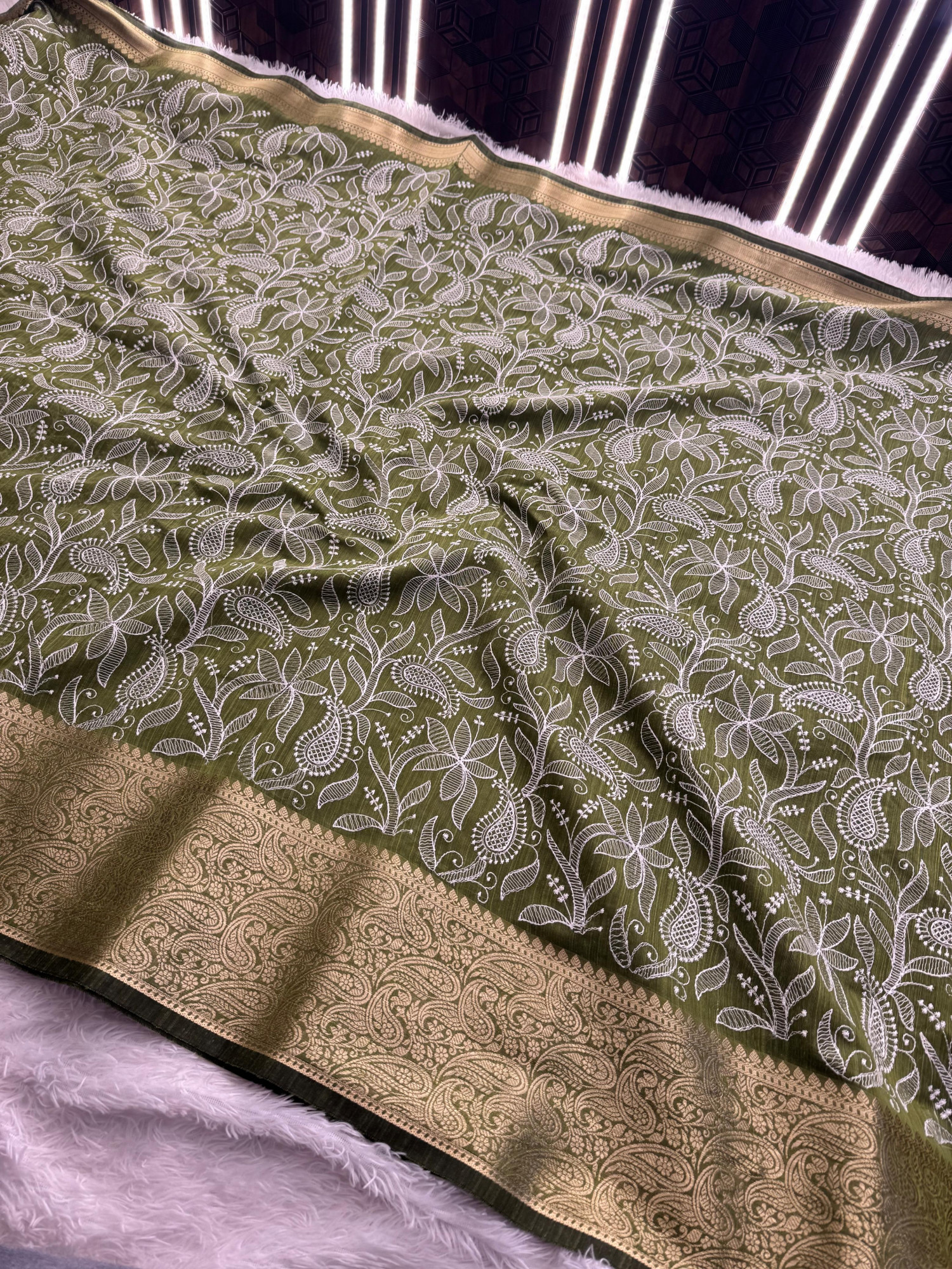 Never Seen Before Premium Linen Silk Chikankari Saree