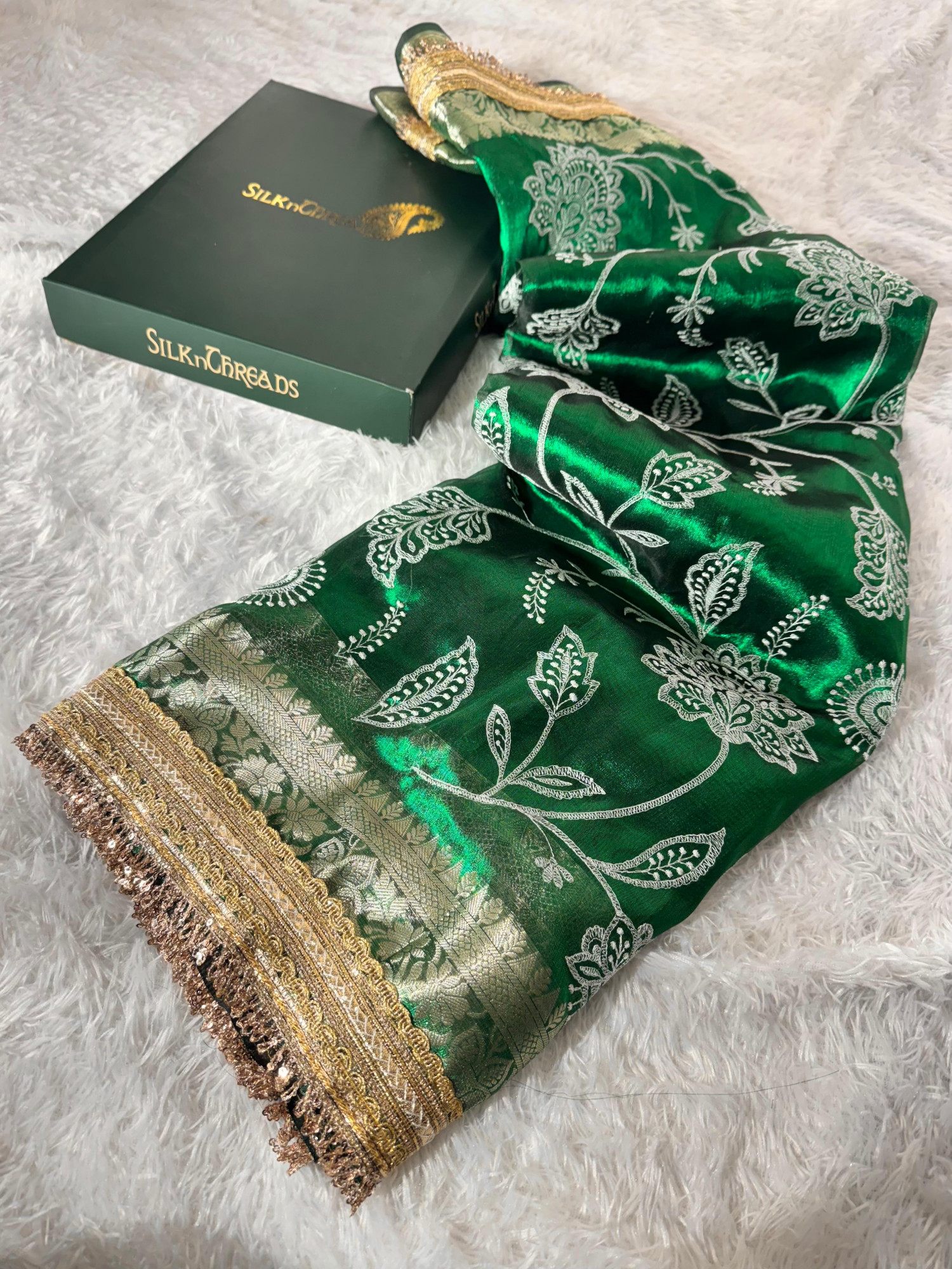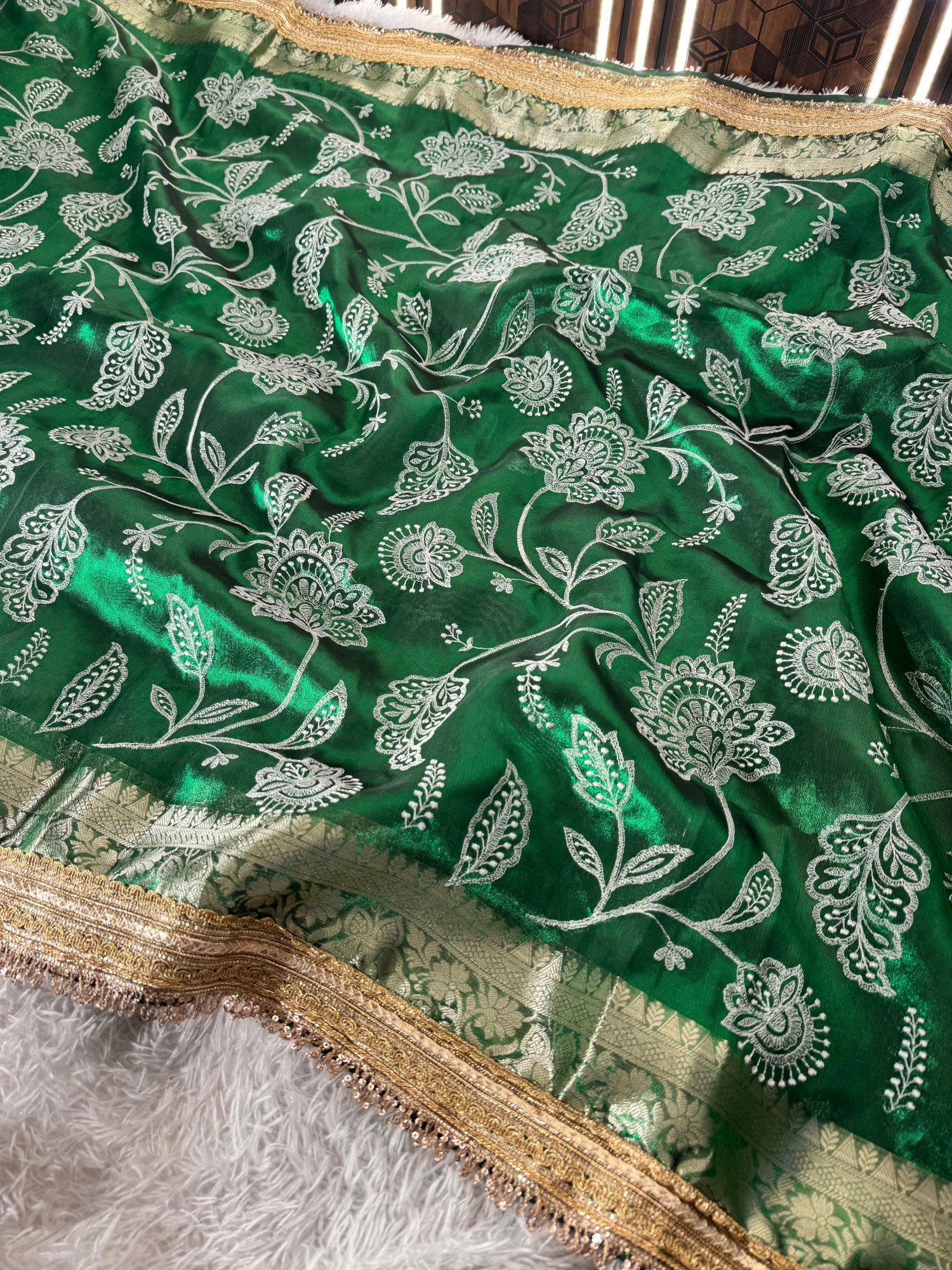 Premium Banarasi Tissue Silk Saree with Hand Crush Pattern