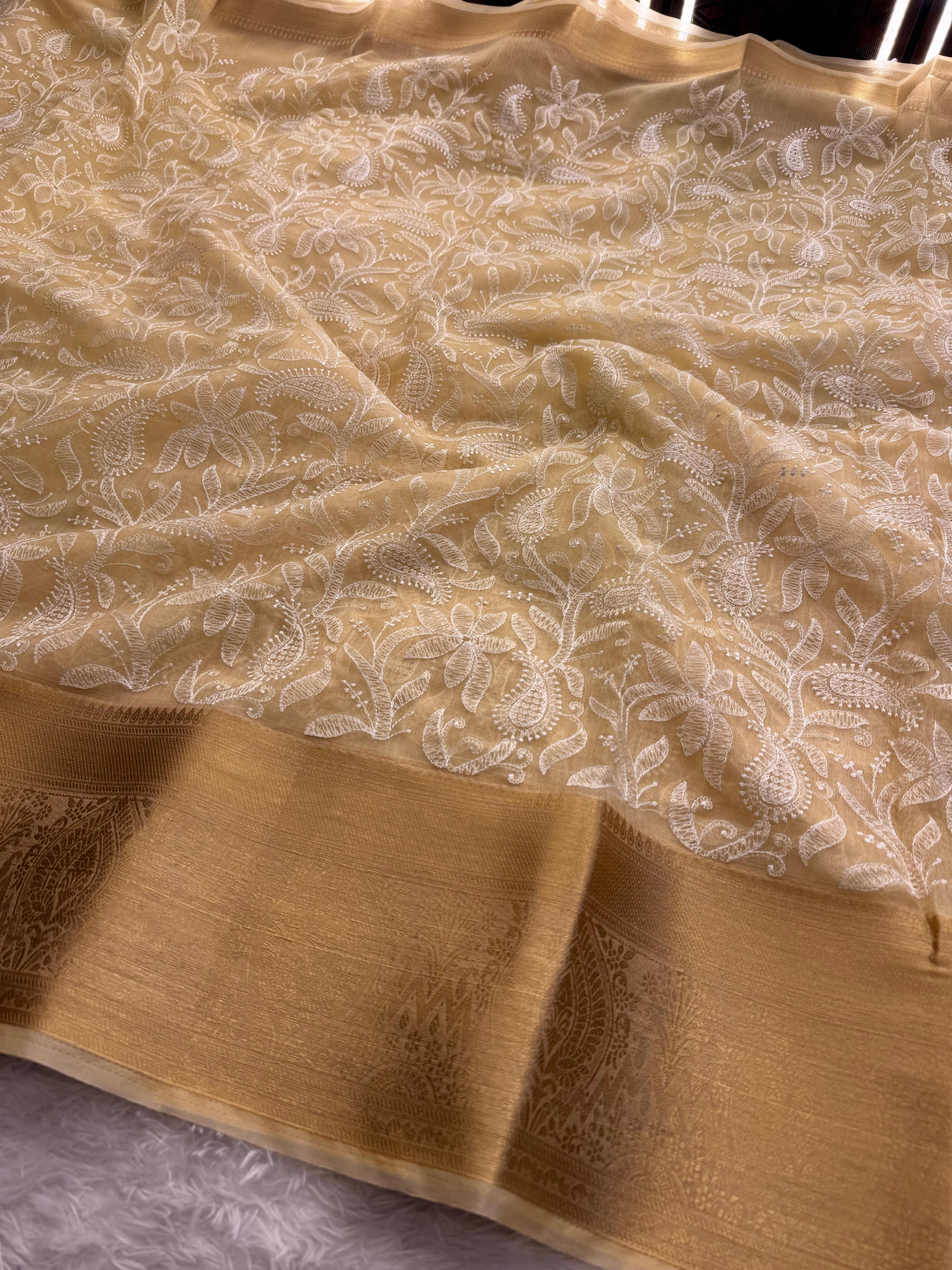 Banarasi Satin Silk Chikankari Embroidery Saree