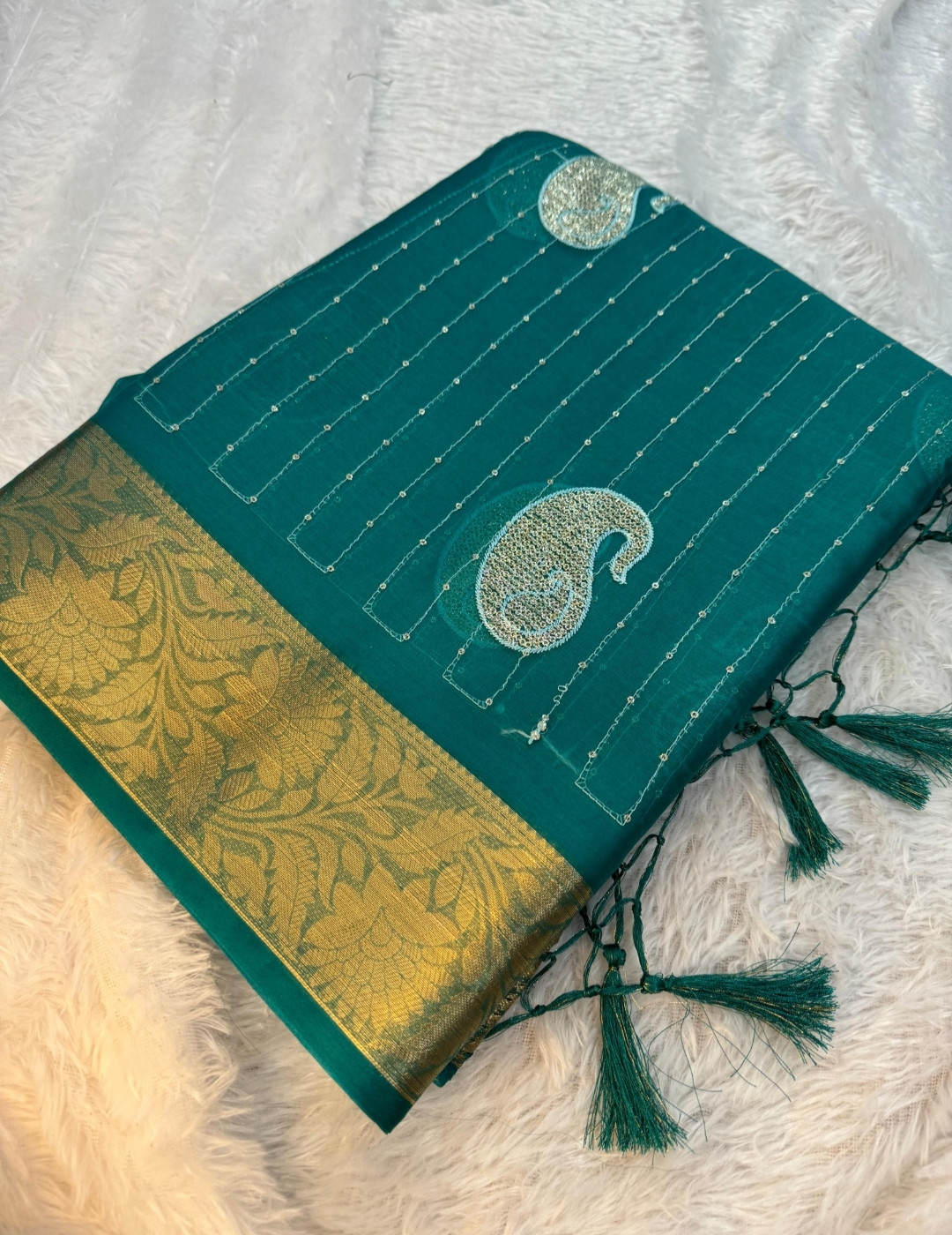 Organza Silk Saree with Sequence Embroidery Work and Tassels