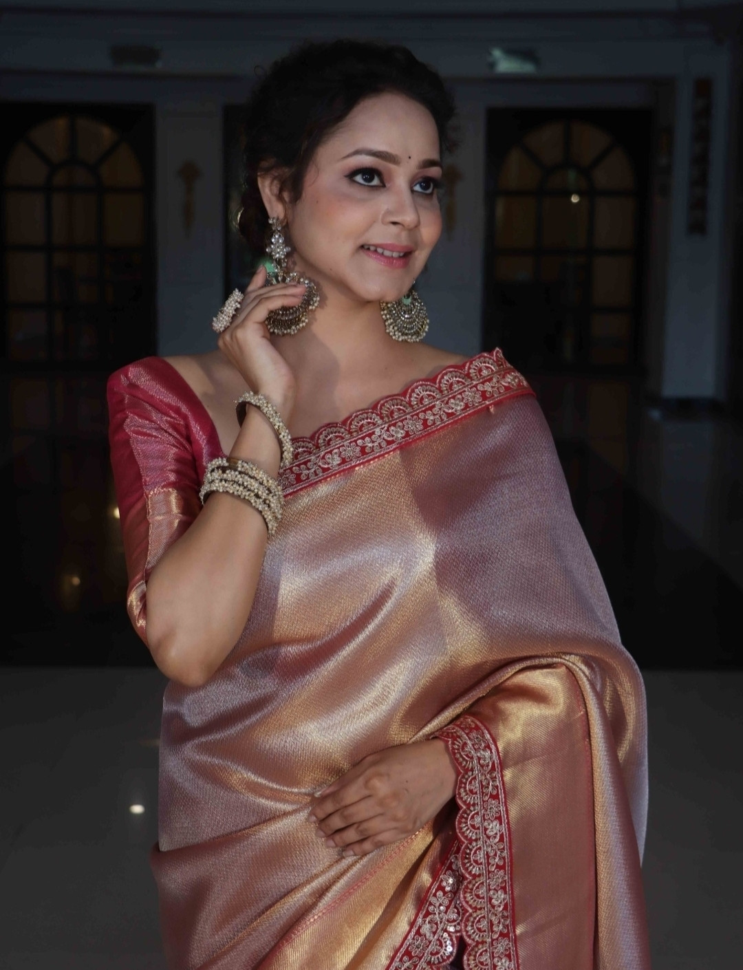 Tapsi Pannu Mam Reddish Pink Banarasi Soft Silk Saree