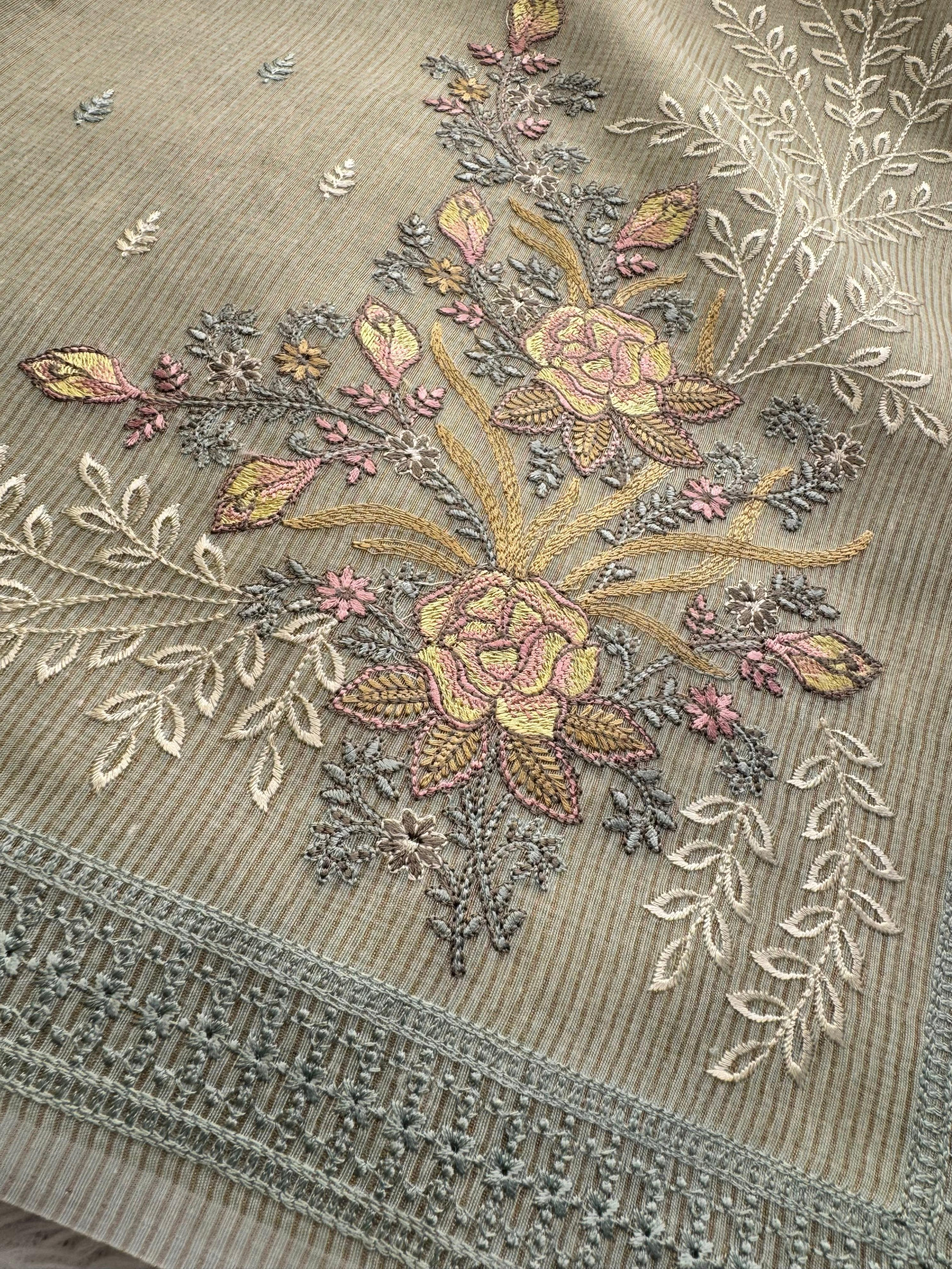 Premium Tissue Banswara Silk Resham Embroidery Work Saree With Designer Embroidery Pallu