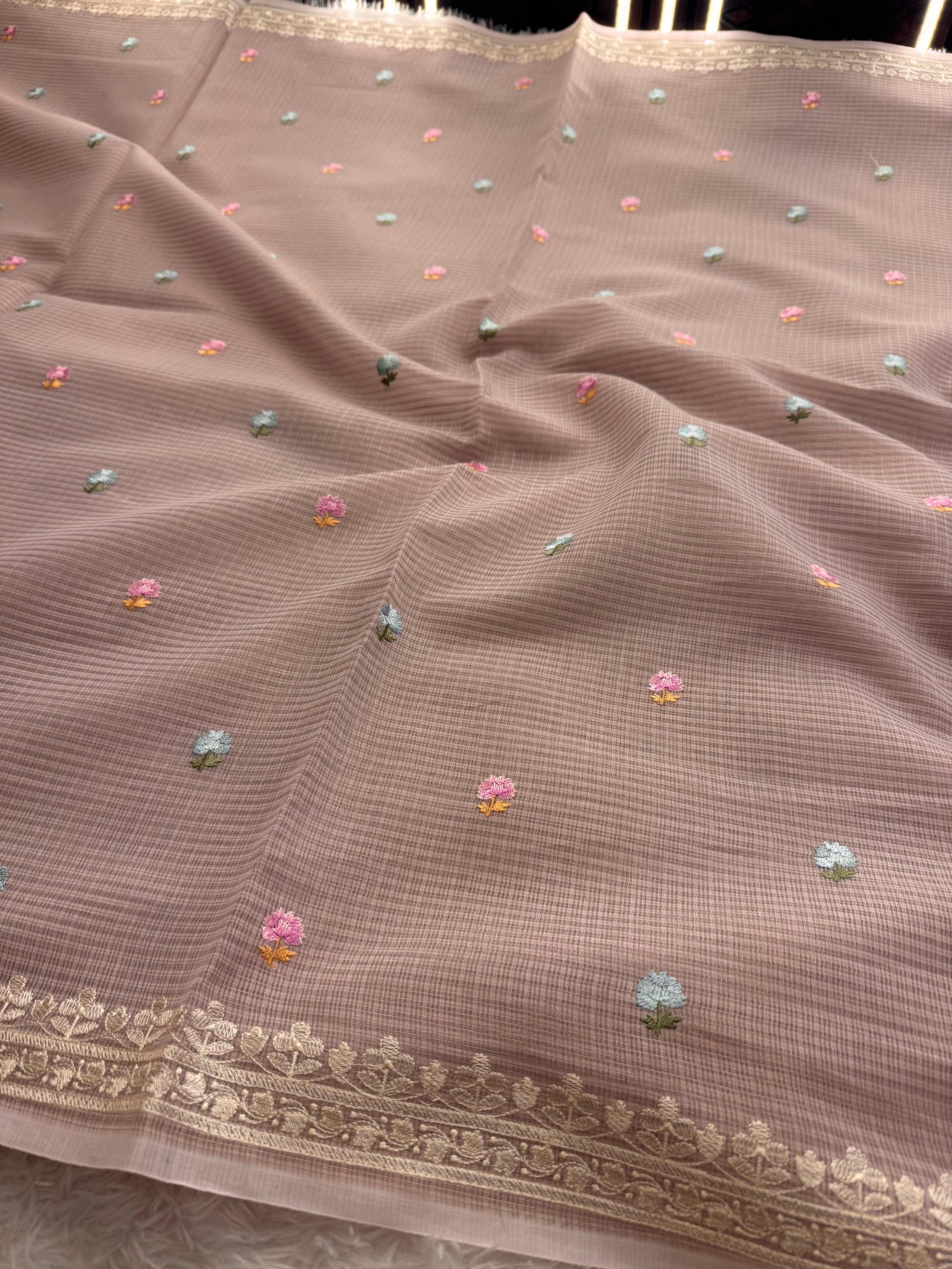 Organza Shimmer Chikankari Embroidery Saree