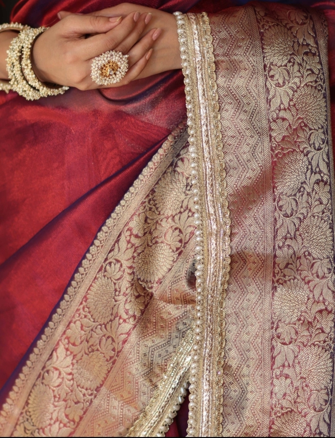 Premium Banarasi Tissue Silk Saree with Designer Red Zari Border