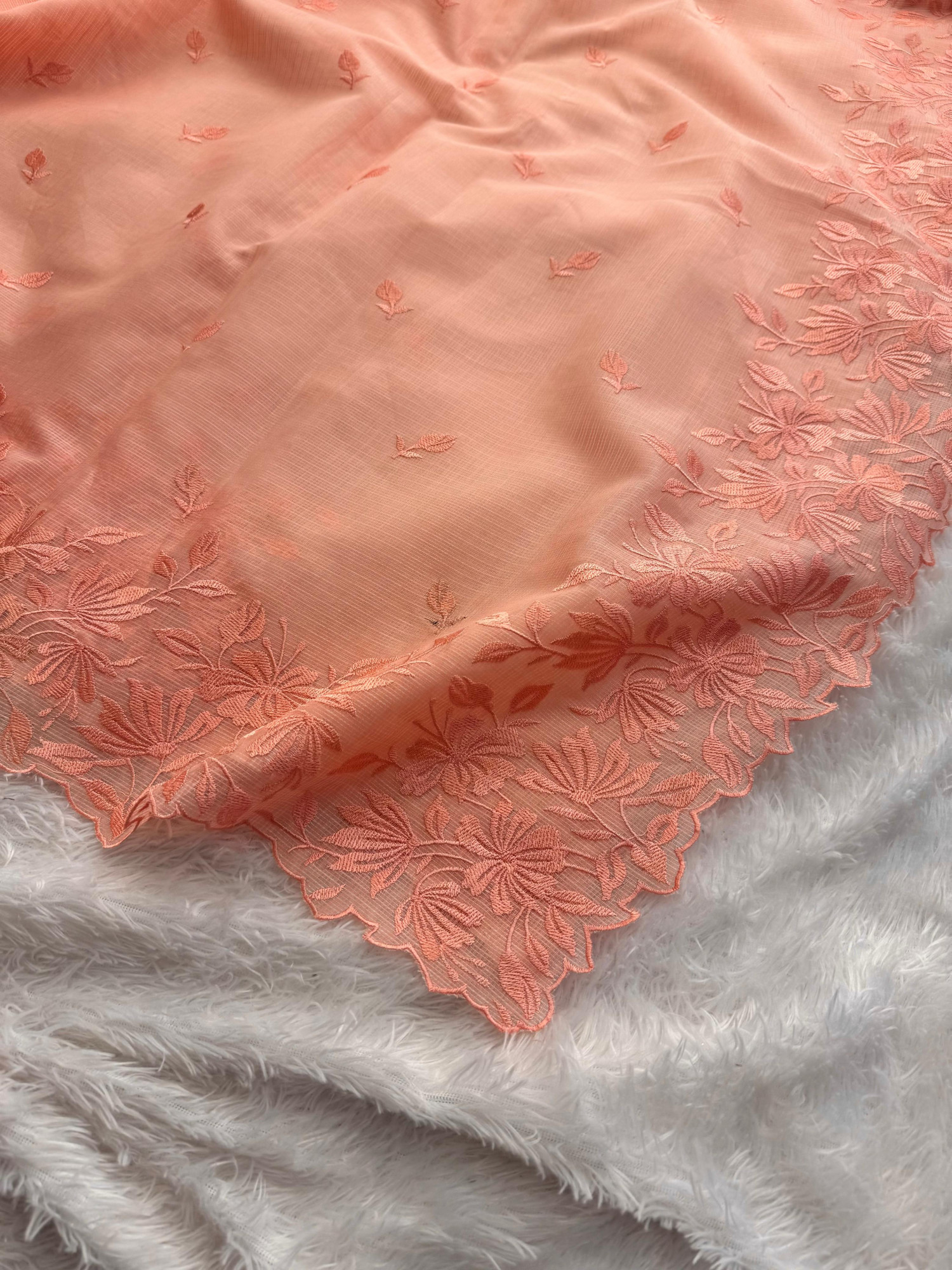Indulge in the luxurious feel of our Premium Resham Embroidery Work On a Semi Pure Silk Fabric. Made with the finest quality silk, it offers a lightweight and comfortable drape while exuding elegance and sophistication. Elevate your style and make a statement with this must-have saree.
