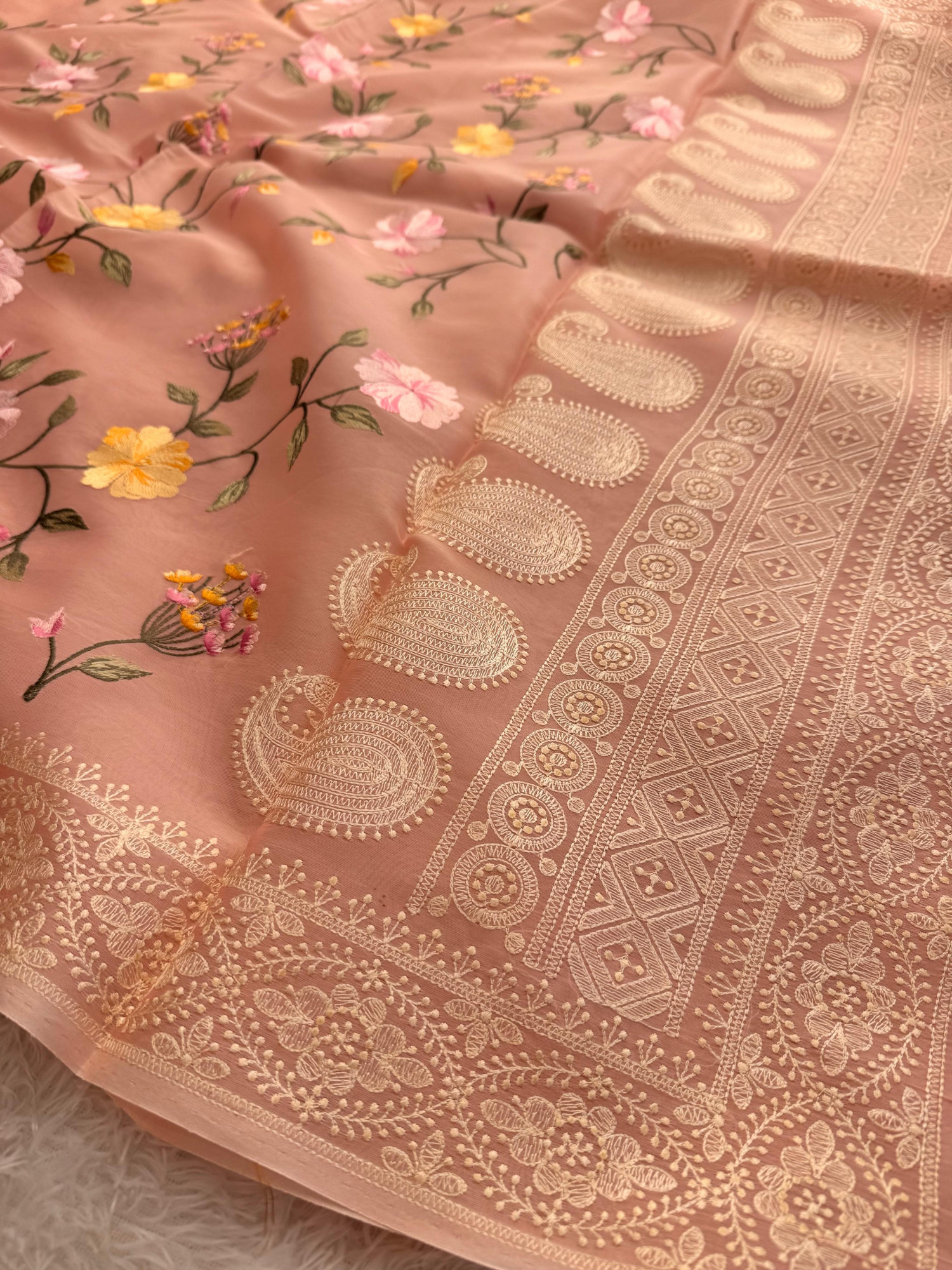 Semi Pure Silk Resham Embroidery Work Saree With Designer Embroidery Pallu