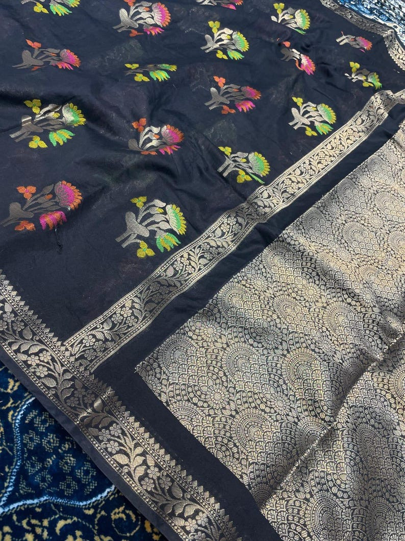 This Semi Georgette Silk Banarasi Saree is a symbol of luxury and elegance. Made from silk and Zari, this saree exudes quality and authenticity. The beautiful Meena Zari Boota make it a timeless addition to any wardrobe. Elevate your style with this exquisite saree.